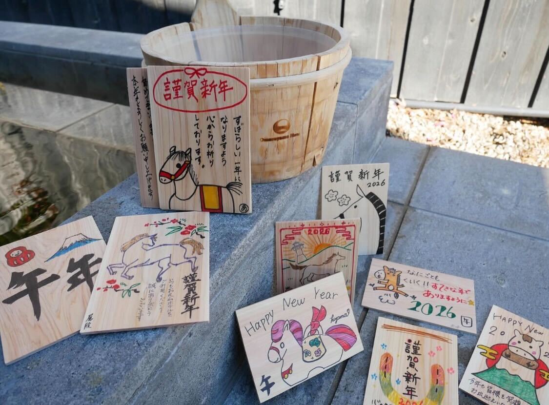 ヒノキの年賀状100枚が、お風呂に浮かびます🌿