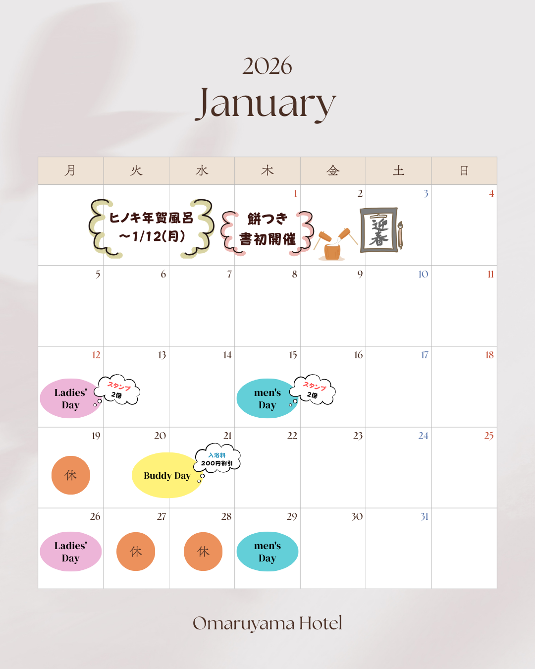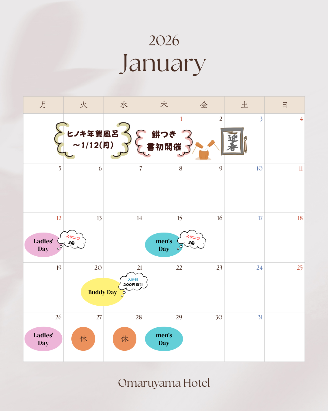 お丸山ホテルでは、1月もお得で楽しいイベントをご用意しております!
